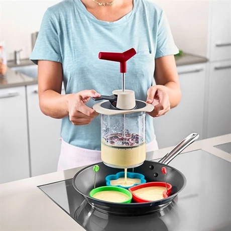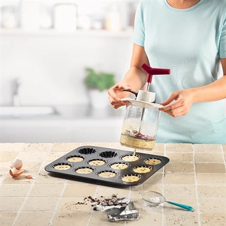 Avec le Batteur à pâte mécanique « Batter Maker » Betty Bossi, battez la crème chantilly et décorez avec un seul ustensile ! Ce batteur décorateur permet de réaliser des crèmes chantilly en 1 min seulement, à partir de crème entière uniquement sans aucun autre ajout d’ingrédients (gaz, conservateurs…). Grâce à sa conception pratique en forme de seringue, il permet ensuite de décorer facilement et directement desserts et pâtisseries. Le fond s’utilise comme couvercle pour une conservation optimale au frais. Nettoyage au lave-vaisselle. Plastique. Capacité 200 ml, mais utilisation possible dès 100 ml. Ø 7,5 cm, H 22 cm.