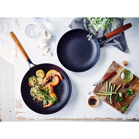 Compatible avec tous les feux dont l’induction, la poêle de 28 cm Mandala est équipée d’un manche en bois d’acacia aux propriétés antibactériennes durables. Il est recommandé de privilégier en entretien à la main.