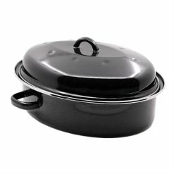 Idéal pour les poulets grillés, autres viandes ou lasagnes, le roaster émail Roasty Cook Beka 32 cm est la cocotte rôtissoire parfaite pour cuisiner sans salir votre four. Grâce à son couvercle à picots et au bord en inox, les éclaboussures seront contenues à l’intérieur et l’eau, qui se condense au contact du couvercle, retombera sur votre viande en un arrosage continu pour l’empêcher de s’assécher durant la cuisson.