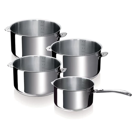 En adaptant au choix un manche ou deux poignées, les casseroles Evolution se transforment en cocottes. Vendus séparément, ces accessoires sont amovibles, pour un rangement facilité. Les casseroles Evolution disposent de graduations intérieures et de bords biseautés anti-éclaboussures. Achetées en lot de 4, les casseroles Evolution sont fournies avec un manche.