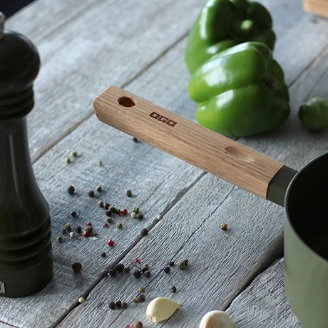 Répondre à un besoin avec la simplicité d’un produit utile et durable est le concept proposé par la casserole anti-adhérente Ector en aluminium forgé et manche bois 20 cm kaki. Epurée, authentique, fonctionnelle, cette casserole au design d’inspiration scandinave se démarque par sa simplicité, son coloris nature mat, ses formes droites et ses matériaux nobles. Le mélange harmonieux du bois de chêne et de l’aluminium forgé assorti à des caractéristiques techniques remarquables la rendent aussi esthétique que performante. Elle s’intègrera naturellement dans toutes les cuisines pour faire le bonheur des cuisiniers en fournissant des cuissons saines et savoureuses.