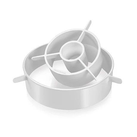 De plus, plusieurs possibilités s’offrent à vous : pour réaliser un arc-en-ciel ou plus globalement un gâteau avec intérieur rayé, il vous suffira simplement de placer le cercle séparateur dans votre moule, et d’y déverser les pâtes dans chacun des espaces colorées selon vos préférences. Le retirer ensuite avant de passer à la cuisson. Pour réaliser un gâteau motifs damiers, le cercle fonctionnera comme un cutter : Il faudra tout d’abord cuire 4 bases de gâteau, 2 d’une couleur et 2 d’une autre. Une fois vos pâtes cuites, vous utiliserez le cercle pour découper des cercles concentriques, qu’il faudra simplement replacer ensuite en alternant les couleurs. Une fois votre gâteau tranché, vous pourrez admirer l’effet damier offert par ce moule. Convient aux moules jusqu’à 28 cm de diamètre. Utilisation possible de la partie centrale seule, pour des petits gâteaux de 18 cm.