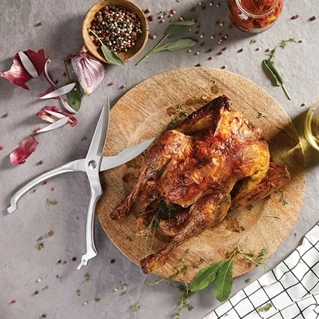 Ces ciseaux à volaille en inox Mathon permettent une découpe nette, propre et rapide de votre volaille.
