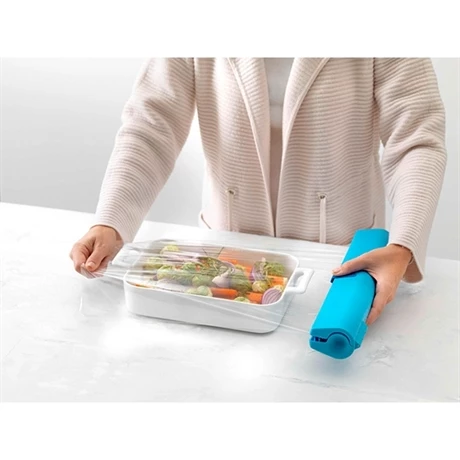 Designé pour un résultat des plus légers et une utilisation ergonomique qui conviendra mêmes aux plus petites mains, vous n’en aurez besoin que d’une pour tenir votre coupe filme alimentaire Betty Bossi tandis que l’autre déroule le film plastique. Ce système vous permettra de le prendre à la volée dans votre cuisine et l’amener où vous voulez pour qu’il reste au plus près des boîtes, plats et aliments à empaqueter. Avec sa lame en acier inoxydable, vous n’avez qu’à appliquer une légère pression pour que le film soit coupé de manière nette et précise. Et pour éviter de perdre le début du rouleau, une griffe récupérera le bout du film à chaque découpe : à la prochaine utilisation, vous n’aurez plus qu’à saisir le bout du film attaché à la griffe pour recommencer.