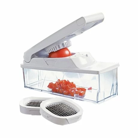 Grâce à ce coupe légumes muni de trois grilles interchangeables, découpez vos fruits et légumes et frites simplement et en toute sécurité. Une pression suffit pour que les aliments tombent coupés dans le bac, sans salir votre plan de travail. L’ustensile est entièrement démontable et supporte le passage au lave-vaisselle. Son couvercle permet la conservation des végétaux tranchés au réfrigérateur. Caractéristiques techniques : lames inox.