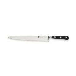 Avec sa lame de 25 cm, le couteau de cuisine Tranchelard Mathon Les Spécialistes est idéal pour trancher les rôtis, viandes, jambons crus ou cuits. Il fait partie d’une ligne de couteaux de type professionnel pour un usage quotidien. Réalisés dans les meilleurs aciers, ils sont forgés d’une seule pièce avec une lame pleine soie monobloc, d’où leur exceptionnelle robustesse. En acier en haute teneur en carbone et chrome molybdène vanadium, ce sont de véritables outils de précision, efficaces et précis, qui s’adaptent à tous les besoins. Munis de manches ergonomiques POM satin galbé très robustes, ils sont garantis 25 ans.