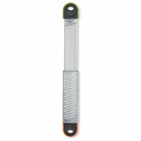 Cette râpe possède deux lames en acier inoxydable : une surface fine pour les zestes, le parmesan, la muscade, la cannelle… et une surface épaisse pour les fromages et les légumes.