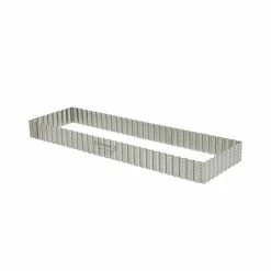 Le cercle à tarte perforé rectangulaire de 35 cm est idéal pour réaliser de délicieuses tartes directement sur votre plaque à pâtisserie. Grâce à ses bords cannelés, votre tarte sera originale et parfaitement régulière. Fabriqué en acier inoxydable, votre cercle à tarte est résistant et n’accroche pas. Très grand format de 35 cm de long.