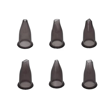 Le coffret 6 douilles en Tritan Géo sur support va vous permettre de réaliser de somptueuses décorations pour des gâteaux aussi variées que vous le souhaitez puisque votre coffret est composé de 6 formats de douille différents : Le premier d’un diamètre de 8 mm, petit et fin, vous permettra de réaliser de toutes petites boules décoratives, avec la pointe vers le haut pour les plus expérimenté. Le deuxième d’un diamètre de 14 mm est en forme de demi-lune, le troisième en forme de triangle, le quatrième est de forme rectangulaire, le cinquième d’un diamètre de 5 mm est en forme de petit carré et enfin le dernier de 10 mm de diamètre, en forme de grand carré. Ce kit vous permettra d’ajouter une touche de modernité à vos préparations puisque les décorations qu’il vous autorise de jolies formes géométriques très actuelles.