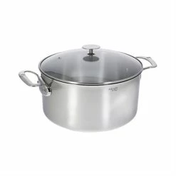 La gamme Milady proposée par De Buyer se compose de produits de cuisson de qualité professionnelle en acier inoxydable avec finition soignée brillante. Le faitout de la gamme Milady d’un format de 28 cm est fabriqué en inox résistant à fond rapporté induction. Maniable, il est doté de 2 généreuses anses ergonomiques rivetées en fonte d’inox. Complet, votre faitout est fourni avec un couvercle en verre cerclé en inox. En prime, votre couvercle s’adaptera à tous vos ustensiles de la gamme Milady, casseroles, sauteuses, poêles et faitout.
