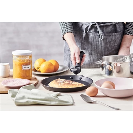 Vos crêpes décolleront jusqu’au plafond sans aucun effort avec la poêle à crêpe Choc Intense amovible De Buyer : fabriquée en France par l’enseigne experte en matériel de cuisson professionnel, cette poêle est équipée d’un manche amovible (non fourni) qui s’insère via une embase rivetée pour une résistante optimale lors de vos lancés de crêpes.