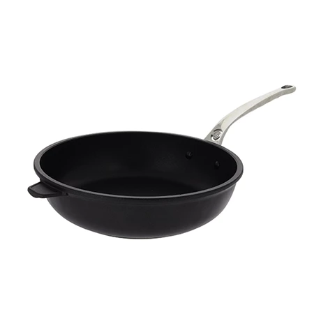Cuisez vos aliments plus rapidement avec la sauteuse Choc Extrême 28 cm De Buyer, avec ses bords plus bas qu’une casserole ou un faitout permettant une évaporation optimale. Incluse dans la gamme Choc Extrême, taillée pour répondre aux exigences des plus grands chefs et pour une très grande durée de vie grâce à une résistance accrue, cette sauteuse est fabriquée en France par l’enseigne De Buyer, experte en matériel de cuisson haut de gamme. Le corps est fabriqué en fonte d’aluminium pour répartir la chaleur de manière uniforme et sa bonne épaisseur permet de contrôler la cuisson et d’éviter les chocs thermiques. Compatible tous feux dont induction, cet ustensile polyvalent pourra intégrer toutes les cuisines.