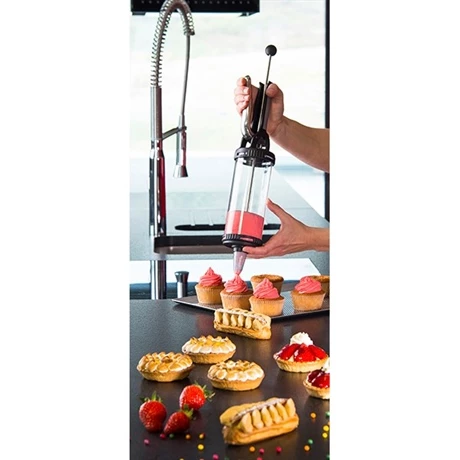 Le tube piston multi-usage à pression est un accessoire complet pour réaliser de délicieux desserts magnifiquement bien présentés ! I Avec lui, vous doserez facilement vos pâtes, crèmes ou encore mousses plutôt épaisses (pâte à chou, pâte à petits fours, crème pâtissière, crème chantilly…). Pour doser mais pas seulement, il vous permettra également de remplir, garnir et décorer toutes vos créations et les embellira à coup sûr !