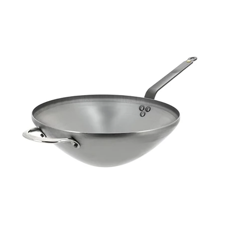 Equipé d’une queue feuillard courbée à la française, le wok De Buyer vous offrira une bonne maniabilité et pourra être rangé sur un crochet grâce au trou situé à l’extrémité du manche. Cette poignée est rivetée pour un résultat indémanchable, ce qui offrira une grande longévité au wok, combiné à sa jupe épaisse indéformable. Et pour bien supporter ce récipient volumineux, une anse est également placée à l’opposé de la queue.