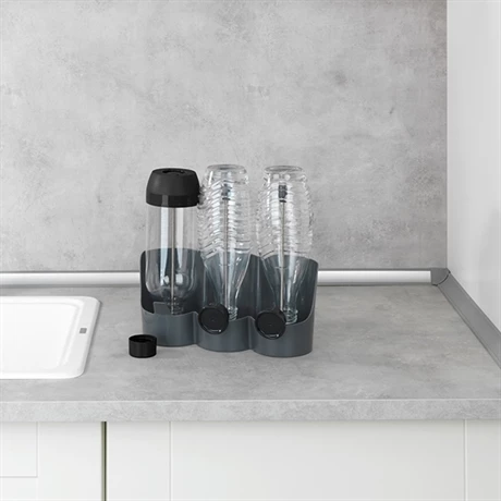 Astucieux et design, l’égouttoir porte-bouteilles Filia reçoit et permet de sécher plus rapidement et de manière hygiénique les bouteilles en plastique, en verre ou en métal : gourdes, thermos, bouteilles pour machines à soda… La tête en bas, les bouteilles sèchent parfaitement : l’eau coule le long du corps de la bouteille, ne stagne pas dans le fond du contenant et est récoltée dans le bac du porte-bouteilles.