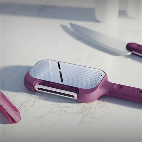 Dans les détails qui paraissent négligeables mais qui apportent une réelle plus-value au Peel and Slice Trebonn, un cache est fourni avec cet ustensile pour dissimuler l’éplucheur, ce qui permet à la fois de renforcer son esthétique moderne et ludique mais également de vous protéger lorsque vous utiliser le trancheur. Une fois votre recette terminée, vous n’aurez plus qu’à mettre l’éplucheur-trancheur Trebonn au lave-vaisselle pour le nettoyer. Un ustensile compilant deux outils pour désencombrer votre cuisine, gagner en efficacité et apporter un vent de fraîcheur dans vos préparations.