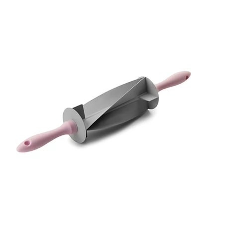 Fabriqué en plastique gris et rose, ce rouleau découpe des triangles de 18 x 18 x 10 cm qu’il ne vous restera ensuite qu’à rouler et laisser pousser pour obtenir de beaux croissants.
