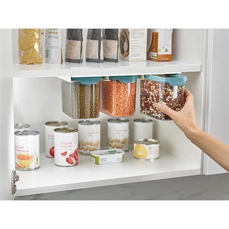 Fournies avec leur rail de rangement, elles peuvent être placées dans ou sous le placard. Les rails sont faciles à fixer grâce à ruban adhésif VHB. L’ouverture des boites est facilitée grâce à une languette sur le couvercle, les couvercles sont hermétiques pour une meilleure conservation de vos aliments.