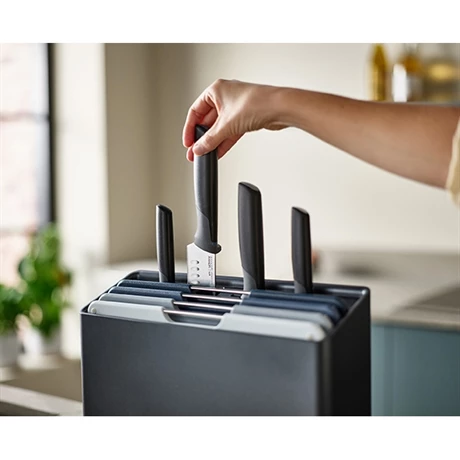 Avec cet ensemble Folio Plus Joseph Joseph, vos essentiels sont à portée de main tout en étant conditionnés hygiéniquement et de manière sécurisée. Vous avez un plan de travail propre et organisé grâce à l’étui de rangement.