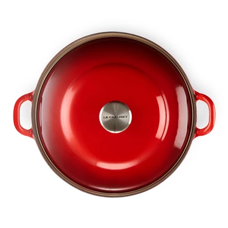 Très esthétique, ce faitout rouge brillant émaillé en fonte passe facilement de la cuisine à la table. Compatible tous feux dont induction, il est très polyvalent et passe même au four, au gril ou encore au barbecue.