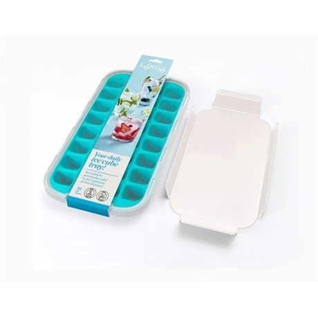 Doté d’un couvercle qui évite les fuites d’eau et transferts d’odeurs et d’une base qui assure une excellente stabilité dans le congélateur, ce maxi bac à 32 glaçons avec couvercle Lékué est innovant. Empilable, il est conçu en caoutchouc souple pour des démoulages faciles.