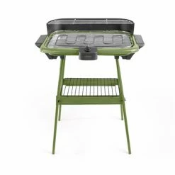 Vous en avez marre d’attendre que votre barbecue chauffe avant de pouvoir enfin faire vos grillades ? Vous fuyez les taches de charbon et la fumée ? Le barbecue électrique sur pieds Livoo vert est une alternative qui vous aidera à résoudre ces problèmes avec efficacité : la résistance électrique évite la toxicité des fumées d’un barbecue traditionnel et fait monter très rapidement la température avec ses 2 000 W de puissance. Et pour réduire encore les odeurs, cet appareil est équipé d’un bac récupérateur de graisse.