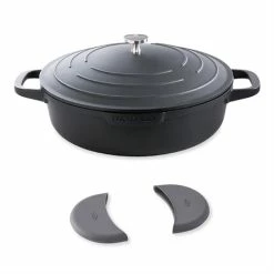 Soyez équipé comme un chef, avec ce lot « cocotte légère basse ronde en fonte d’aluminium Mathon et 2 maniques en silicone« . Ne vous brûlez plus les mains en attrapant votre cocotte, ce lot vous fournit tout le nécessaire pour cuisiner de bons plats mijotés en toute sécurité.