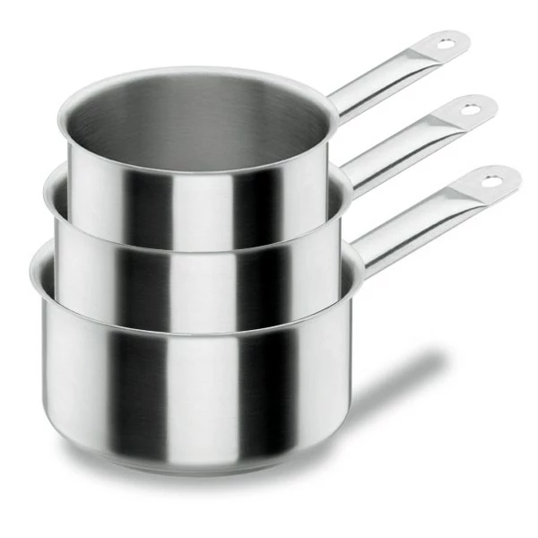 Ce lot comporte 3 casseroles 16/18/20. La nouvelle gamme Chef classique propose un batterie de cuisine complète comprenant casseroles, faitouts, marmites, sauteuses.