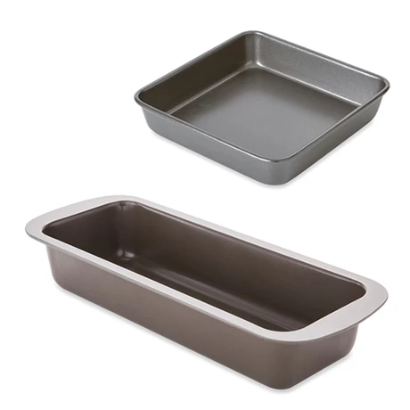 Ce lot comprend un moule à manqué carré 23 cm et un moule à cake 30 cm Mathon.