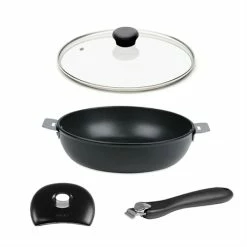 Ce lot vous propose 4 produits de cette gamme : la sauteuse de 28 cm et ses accessoires indispensables. 1 anse, 1 poignée et 1 couvercle en verre trempé de 28 cm.