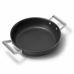 Smeg Faitout Bas Aluminium Antiadhésif 24 Cm Noir Mat Avec Couvercle En Verre Trempé