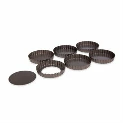 Set De 6 Moules à Tartelette Avec Fond Amovible Acier Revêtement Antiadhérent 12 Cm