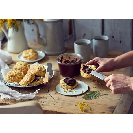 Le couteau Petit-déjeuner de Opinel est idéal pour le plus important repas de la journée ! La lame mesure 11,5 cm pour racler efficacement les pots de pâte à tartiner, de confiture ou pour prélever du beurre et le tartiner sur des toasts tous justes grillés, vos tranches de pain de mie ou de brioche. La lame en inox est très résistante, elle ne s’oxyde pas ! Elle est dentelée sur 7,5 cm afin de couper facilement des tranches de pain, viennoiseries, saucisses… et son manche en bois de hêtre apporte une touche d’authenticité à votre table de petit déjeuner.