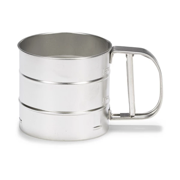 Ce tamis spécial farine disposant d’une capacité de 250 gr va vous permettre de tamiser votre farine pour des préparations sans grumeaux et des mélanges parfaits ! Fabriqué en inox, ce tamis au format d’une grande tasse dispose d’une poignée pour une prise en main fluide et facilité. Et pour des quantités parfaitement maîtrisées, ou pour vous servir de votre tamis comme verre doseur, des graduations à 125 et 250 gr sont gravées dans l’inox pour vous guider au quotidien.