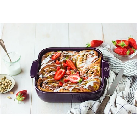 Ce plat à four carré Appolia 36 cm aubergine a tout pour vous séduire, une somptueuse couleur magnifiée par la brillance de la céramique émaillée vitrifiée et des lignes lisses modernes avec coins arrondis pour faciliter le service et le nettoyage. Sa grande contenance le destine aux larges tablées familiales et ses bords hauts le rendent particulièrement adapté à la cuisson de grands plats familiaux tels que les lasagnes, les gratins, ou les légumes du soleil au four qui accompagnent si magnifiquement les grillades d’été.