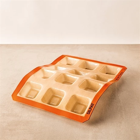 Génoises, fonds de tartelettes, meringues, flans… les idées sont nombreuses pour régaler tous les gourmands. Résistant à des températures allant de -40°C à +260°C, le moule 12 savarins carrés Silpat est compatible four et congélateur sans se déformer, grâce à sa conception brevetée. Il confectionne jusqu’à 12 gâteaux de 6,5 cm de côté et de 3 cm de hauteur.