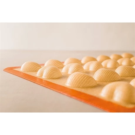 Tendres et originales, les bouchées confectionnées dans le moule 28 mini-cœurs Silpat ont une saveur particulière ! Innovant, ce moule breveté est conçu en toile de verre souple, revêtue d’une couche de silicone antiadhérent. Ainsi, il n’est pas nécessaire d’ajouter de la matière grasse avant de verser la préparation, et le démoulage se fait facilement. Vous pourrez cuisiner plus sainement sans perdre en praticité grâce à ce produit fabriqué en France.