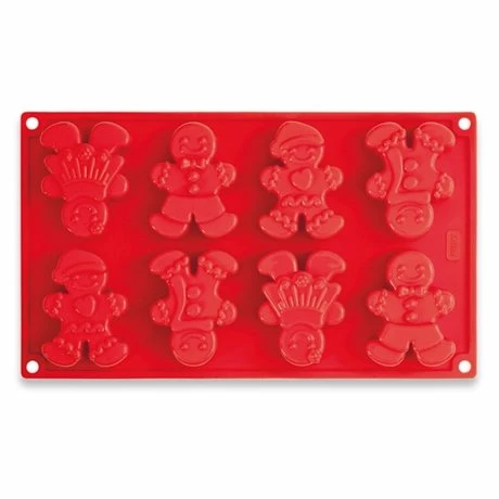 Créez des petits bonhommes en biscuit, pain d’épices ou chocolat, pour le plaisir des gourmands ! Grâce à cette Plaque silicone Gingerman 8 personnages en silicone anti-adhérent, il ne manquera plus qu’un peu de décoration pour obtenir 8 gâteaux traditionnels qui raviront les yeux et les papilles !