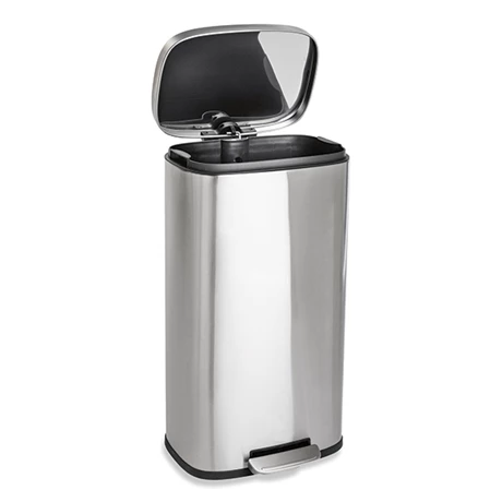 Dotée d’un frein de chute, le couvercle se referme doucement pour limiter le bruit. Equipée d’une pédale, la poubelle s’ouvre et se ferme sans avoir à soulever le couvercle avec les mains pour un maximum d’hygiène.