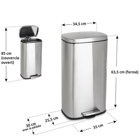 Encombrement poubelle ouverte : 35 x 30 x 85 cm