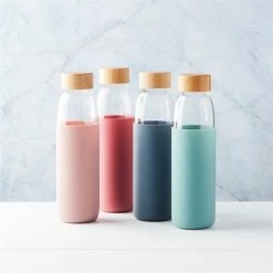 Bouteille En Verre Avec Manchon En Silicone Rose 580 Ml