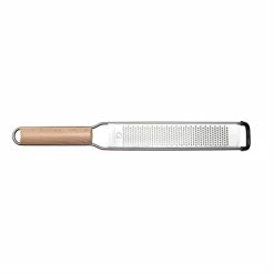 La râpe fine 2 en 1 zesteur avec manche en hêtre dispose d’une lame en acier inoxydable durable et esthétique. Ultra coupante, elle vous permettra de râper finement et dispose d’un embout antidérapant de manière à prendre appuie sans glisser. Robuste, son manche en fil inox avec insert en hêtre naturel verni dispose d’un design authentique tout en étant ergonomique lors de son utilisation. Multifonction, vous pourrez également zester la peau des agrumes et râper finement fruits secs, épices, condiments et les fromages durs comme l’emmental et le parmesan.