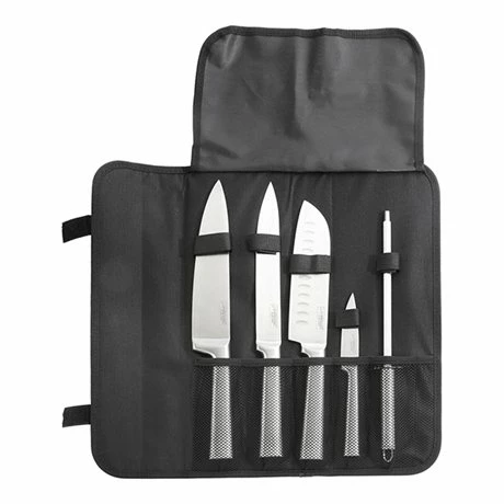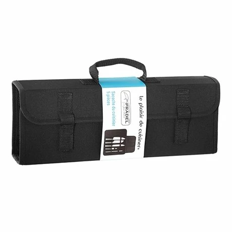 Cette sacoche du cuisinier de la marque Pradel par Jean Dubost contient 4 couteaux de qualité professionnelle indispensables en cuisine : couteau de chef, santoku, à découper et couteau d’office, et 1 fusil à aiguiser. Multifonctions, ces couteaux sont dotés de lames en acier inox d’épaisseur 2,2 mm. Ils sont présentés dans une sacoche de cuisinier noire avec rabats de protection.