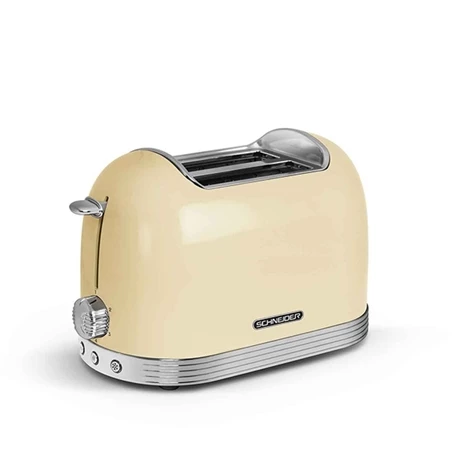 Intégré dans la série d’appareils de petit électroménager vintage de Schneider, le grille-pain 2 fentes 815 W SCT02CR crème est doté d’un design aux formes arrondies, de finitions chromées et d’un bouton sélecteur style aviateur. Une fois dans votre cuisine, ce grille-pain apportera une touche esthétique rétro qui décorera avec soin votre plan de travail.