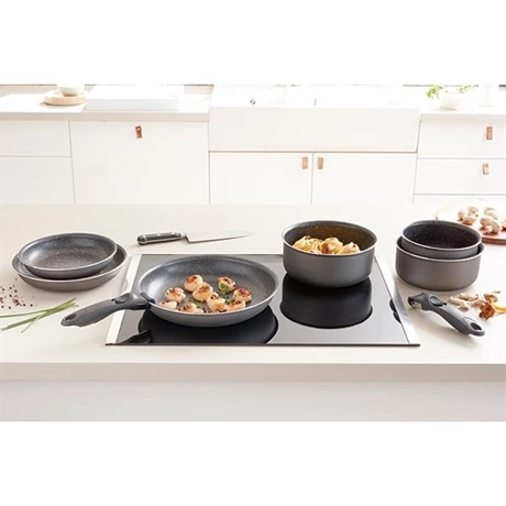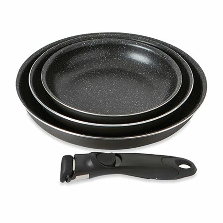 Set 3 Poêles Anti-adhésives Effet Pierre Et Manche Amovible