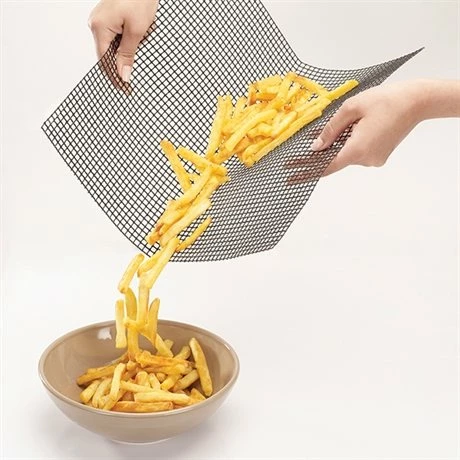 Compatible avec les fours traditionnels et micro-ondes, les deux grilles de cuisson en fibre de verre avec un revêtement anti-adhérent permettent de cuire vos préparations sans ajouter de matières grasses. Simple d’utilisation, elles se posent directement sur votre grille de four ou sur vos plats de cuisson, permettant la libre circulation de l’air pour des préparations toujours plus croustillantes : frites, feuilletés, mises en bouches …
