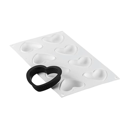 Le Kit mini tarte petit amour, permet de préparer de magnifiques tartelettes ou petites pâtisseries qui auront une forme originale de cœur. Vos préparations étonneront vos invités. Le kit se compose de 8 moules à tartes micro perforés et 1 plaque en silicone pour 8 cœurs individuels.