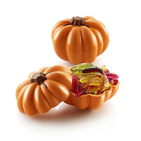 Décorez votre citrouille en colorant le chocolat en orange ou avec des colorants directement applicables par-dessus la coque pour un rendu plus naturelle, et remplissez-la de bonbons pour le bonheur des plus petits. Le moule à citrouille Silikomart sera un allié certain pour un Halloween effrayant et surprenant.