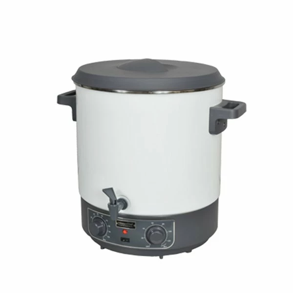 Préparez de grandes quantités grâce à sa cuve émaillée d’une contenance de 28 L. Pratique, il possède un robinet de vidange.