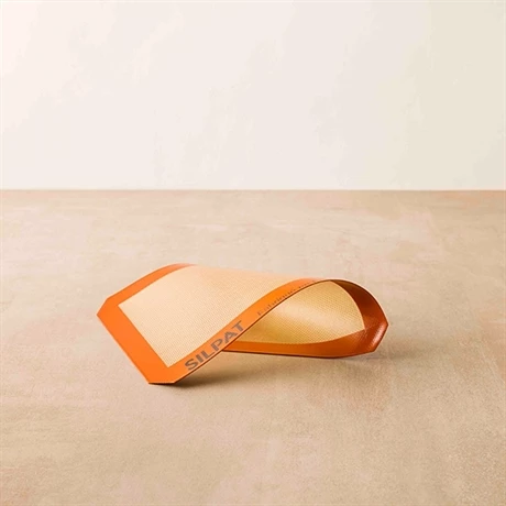 Anti-adhérente, flexible, fabriquée sans BPA, phtalates ou peroxyde, cette toile de cuisson revêtue Silpat 29,5 x 20,5 cm résiste à des températures allant de -40°C à +260°C et reste intacte jusqu’à 2500 utilisations.
